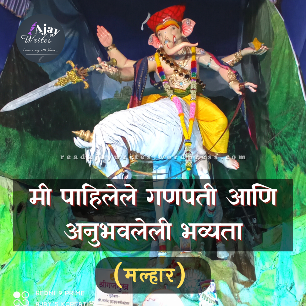 त्या काळ्यारंगाच्या मंडपात आत जाताच समोर एक भव्य अशी गणपतीची मूर्ती दिसली. ते बाप्पाचं रूप पाहून मनांत एक वेगळाच उत्साह निर्माण झाला. दुःख, त्रास सगळं काही विसरून गेलो. जे समोर पाहत होतो ते बाप्पाचं रूप हे मल्हार मार्तंड म्हणजेच जेजुरीच्या खंडोबाच्या रूपातलं होतं.