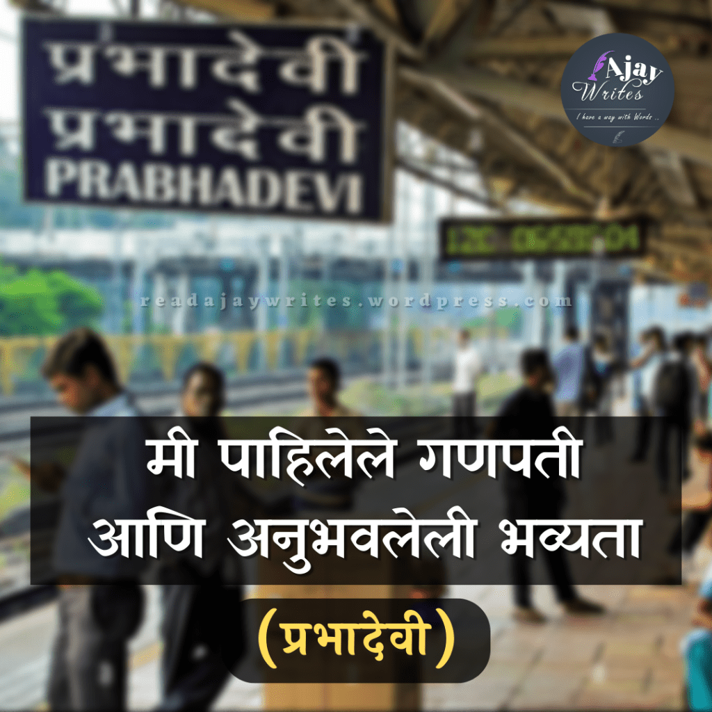 मला पहिले परळ मधले गणपती बघायचे होते म्हणून पहिले प्रभादेवी स्टेशन उतरणार होतो. नंतर झालं असं की, प्रभादेवी स्टेशन आलं आणि मी थोडासा गोंधळलो. उतरायचं होत प्रभादेवीच पण डोक्यात कुठूनतरी आलं की मला महालक्ष्मी उतरायचं आहे म्हणून. ही गोष्ट जेव्हा लोअर परेल स्टेशन सोडलं तेव्हा लक्षात आली. प्रभादेवी नंतर लोअर परेल सोडलं की महालक्ष्मी स्टेशन. कदाचित प्रभादेवी महालक्ष्मी ह्या दोन्ही देवीच्या नावाच्या स्टेशनमुळे गोंधळ झाला असेल. म काय आता महालक्ष्मी उतरून पुन्हा बोरिवलीकडे जाणारी रेल्वे पकडून प्रभादेवी उतराव लागणार होतं. आधीच धावपळ त्यात अजून ही एक भर.