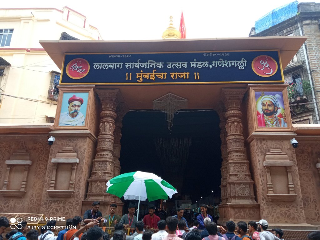 आता एकदाचा त्या मुख्य प्रवेशद्वारा जवळ आलो. त्या प्रवेशद्वारावर लिहिलं होतं ‘लालबाग सार्वजनिक उत्सव मंडळ, गणेशगल्ली’ म्हणजेच ‘मुंबईचा राजा’.