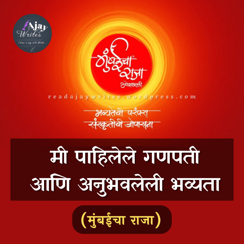 हळू हळू बाप्पाच्या पायापाशी पोचलो. बाप्पाचं रूप पाहता तिथून पायच निघत नव्हता. दरवर्षी वेगवेगळ्या रुपात असणाऱ्या बाप्पाचं रूप आजही वेगळ्याच अवतारात होत. आताच अवतार हा विश्वाची निर्मिती करताना होता. मुंबईच्या राजाच आगमन होत नाही कारण त्या बाप्पाची मूर्ती तिथेच घडवली जाते. बाप्पाचं गणेशोत्सवाच्या आधी मुखदर्शन दिलं जातं आणि ते मी ऑनलाईन पाहिलं होत. तेव्हाच हि मूर्ती सुद्धा मनात भरली होती आणि आज प्रत्यक्षात समोर पाहत होतो ..